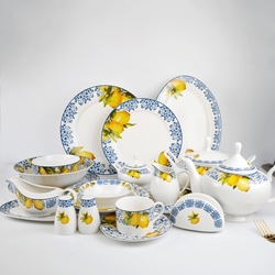 Tùy Chỉnh Gốm Cổ Điển Màu Xanh Trắng Sứ Chanh Thiết Kế Mới Xương Trung Quốc Tinh Tế Bộ Đồ Ăn